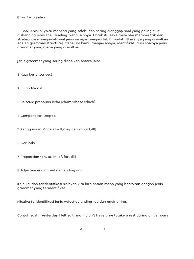In jakarta convention center error recognition question from number 3 to 10! 20 kumpulan soal toelf bahasa inggris error recognition terbaru politics. Contoh soal un bahasa inggris smk | airlines | mecca d. Let's go to (a) the . Hai sahabat sbi (study bahasa inggris ), kembali saya menyapa.